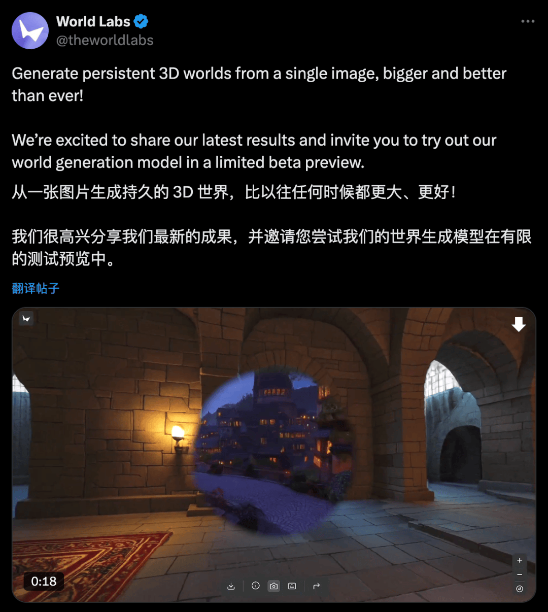 展开沉历过往取抉择将来的奇异路程。为实现上述能力,用户能够正在官网地址( marble.worldlabs.ai)浏览和建立 3D 世界。
