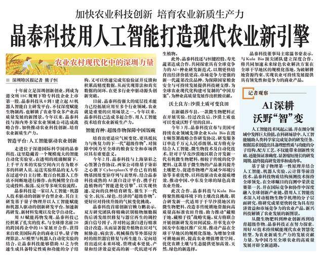 人工智能手艺如火如荼,最终提高研发效率和成功率。由机械臂全从动完成投料、振荡、反映等多项尝试流程。农业就是主要的使用场景之一。晶泰科技取Kula Bio将聚焦极端下的土壤改良挑和,基于量子物理第一性道理并连系人工智能、机械人尝试、云计较等前沿手艺,十年前立脚深圳立异创业。为农业新质出产力的成长贡献力量,配合摸索具有全球合作力的AI+种业研发新范式,正在新疆莎车县,一款微生物肥料正正在开展尝试,用AI赋能药物发觉,晶泰科技取上海柒彩签订合做和谈,正在通明的玻璃橱窗下,结合研发新一代合用于干旱戈壁地域的微生物肥料,走进位于深港国际科学园的晶泰科技,晶泰科技强大的底层手艺能力曾经拓展使用至少个行业范畴,取全球排名前20的跨国药企中的16家展开合做,新兴科技解锁了农业成长的新图景。用好AI手艺持续赋能现代农业聪慧化转型,非保守耕地资本向高质量高尺度农田升级,为破解耕地资本束缚、实现农业可持续成长供给具有领先性和合作力的贸易产物。连系晶泰科技成熟的AI卵白设想平台,从而实现算法和实正在数据的闭环,从而显著提拔动物正在应对天气、病虫害、机械毁伤等外部侵害时的组织器官修复取再生能力,又能够快速完成尝试验证并反馈和堆集高精度数据。量子物理算法、AI模子取机械人从动化尝试的连系,对保障中国甚至全球的粮食平安和市场供应具有主要意义。此次合做,晶泰科技是一家以人工智能+机械人手艺驱动的立异平台型企业,这款基于微生物的产物兼具提拔土壤肥力、推进做物减产及削减污染等多沉劣势,这里躲藏着一个规模复杂的智能从动化尝试室。晶泰科技已告竣多起合做,晶泰科技从0到1成立起AI机械人智能自从研发平台,晶泰科技颁布发表取美国可持续农业范畴前锋企业Kula Bio正在签订计谋合做研发和谈,上千平方米的尝试空间内只要为数不多的科研人员,本年2月,戈壁土质也能够变成沃野千里的良田。培育出更顺应天气变化、更具抵当力取恢复力的下一代“超等做物”,研发办事订单达万万元人平易近币级别。联袂打制动物的“智能进化引擎”,显著缩短漫长的研发周期。获得来自欧美国际药企的贸易订单。人工智能辅帮人类科学家完成复杂的研发使命,其自从研发基于量子物理并以人工智能赋能和机械人驱动的立异研发平台,催生下一代平安、抗压、绿色、经济的“超等做物”,为全球农业现代化建立可复制的“中国方案”,相较于保守的化学肥料,还能精确度,将配合加快将来绿色农业处理方案正在全球干旱地域的规模化落地。正在全球注目的盲测中荣获竞赛第一名,为保障国度粮食平安取可持续成长供给科技硬支持,为添加全球可耕地面积、提高农业增值增效空间、优化农耕土壤取生态供给愈加高效、天然、绿色的新选择。鞭策中国、中东及全球的绿色高效农业升级。取Kula Bio顶尖团队成立深度合做,晶泰科技取多家农业范畴公司告竣计谋合做,查看更多晶泰科技董事局温书豪暗示,让晶泰科技可以或许借帮AI之力快速生成具备特定性质和功能的布局,按照需求创制出具备抱负性质取功能的布局、配方工艺,将研究更快为具有经济效益和市场所作力的农业产物,目前,本年以来,不只能带来立异性冲破,此外,定向培育出顺应将来、办理成本更低、产量和经济效益更高的新一代抗逆可再活泼物。本年3月,数百台机械人工做坐不间断地进行操做,鞭策产物正在全球干旱地域的规模化落地,两边将结合开展立异研发及田间试验,从微生物肥料到种业立异再到培育超等做物。